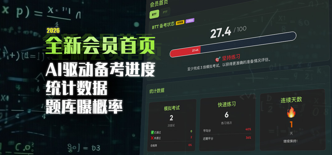 我们已为您升级了会员控制面板,新增了 AI 驱动的分析功能与备考状态检查!立即体验吧!